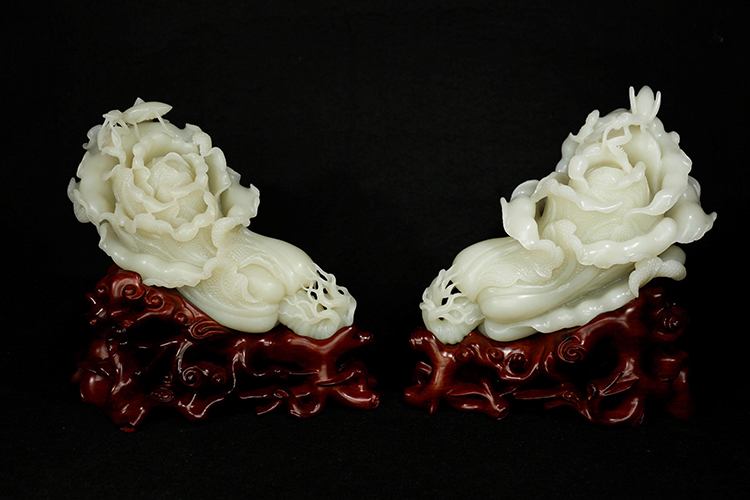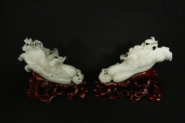 玉雕大師設(shè)計(jì)雕琢兩顆兩顆和田玉白菜匠心獨(dú)具,殊有深意。