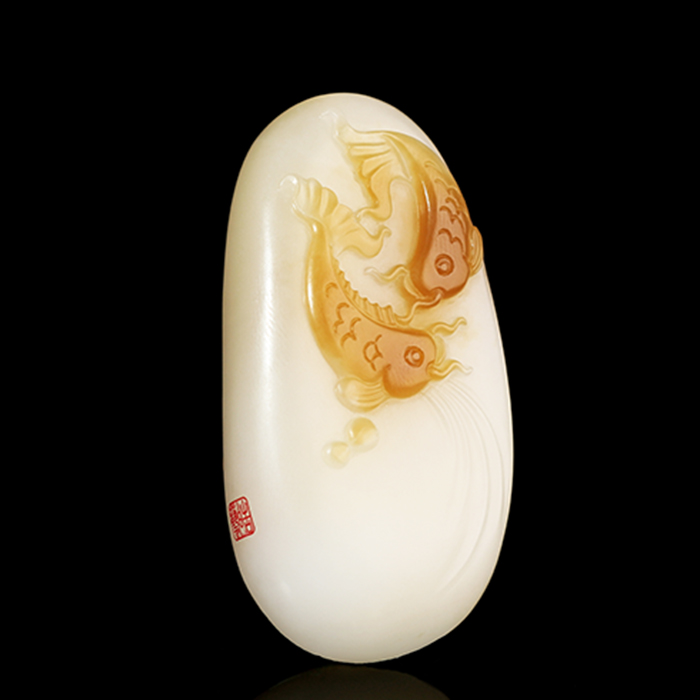 藝皓天然精品和田玉糖羊脂玉年年有余 把件車掛