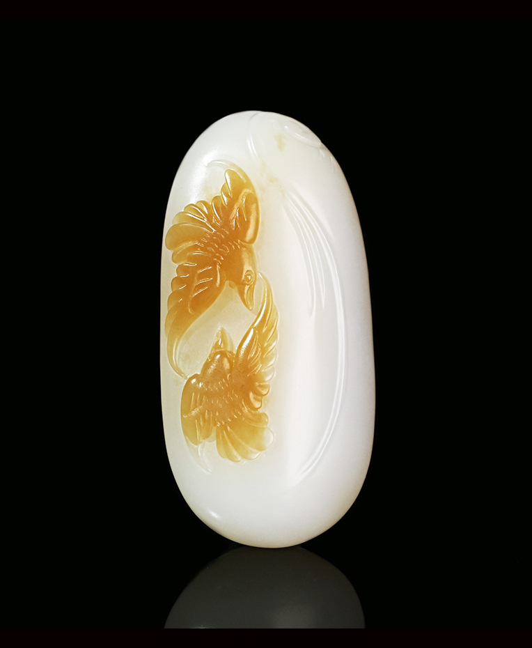 藝皓天然精品和田玉把件一鳴驚人 車(chē)掛帶收藏