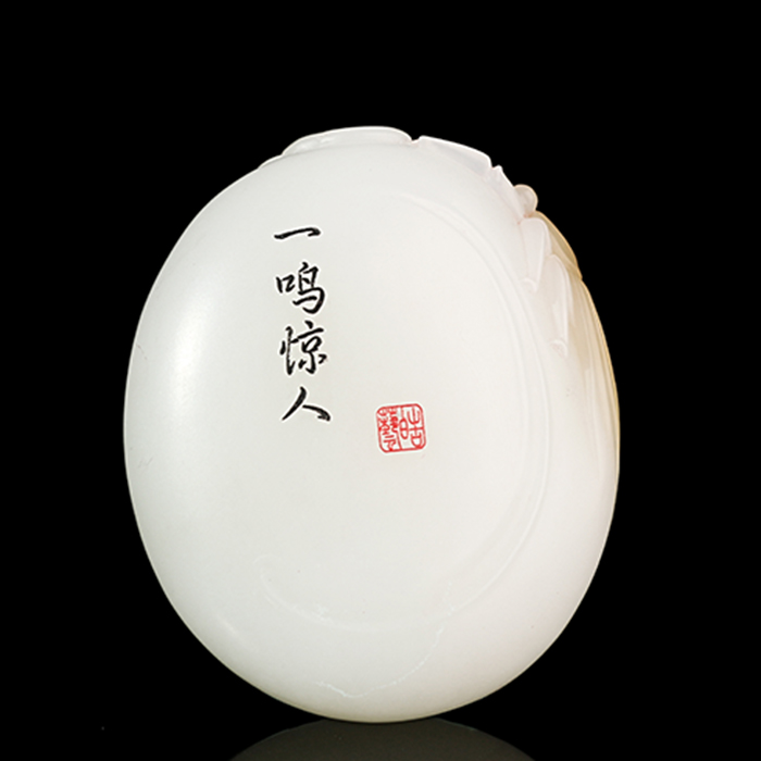 藝皓天然精品和田玉把件一鳴驚人 車掛帶收藏